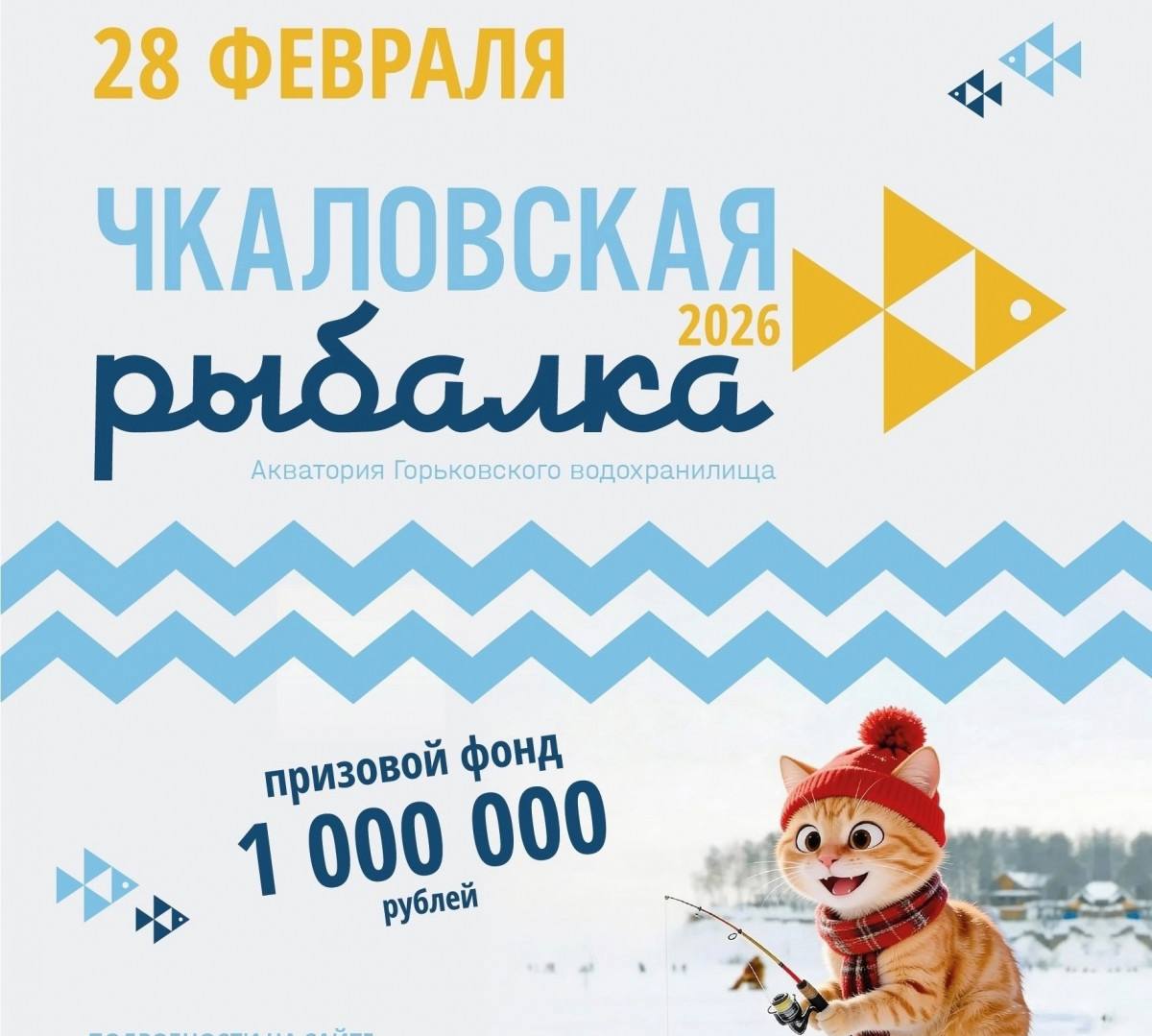 Международный фестиваль подледного лова «Чкаловская рыбалка — 2026» состоится в Чкаловске 28 февраля на слиянии рек Волги и Санахты.
