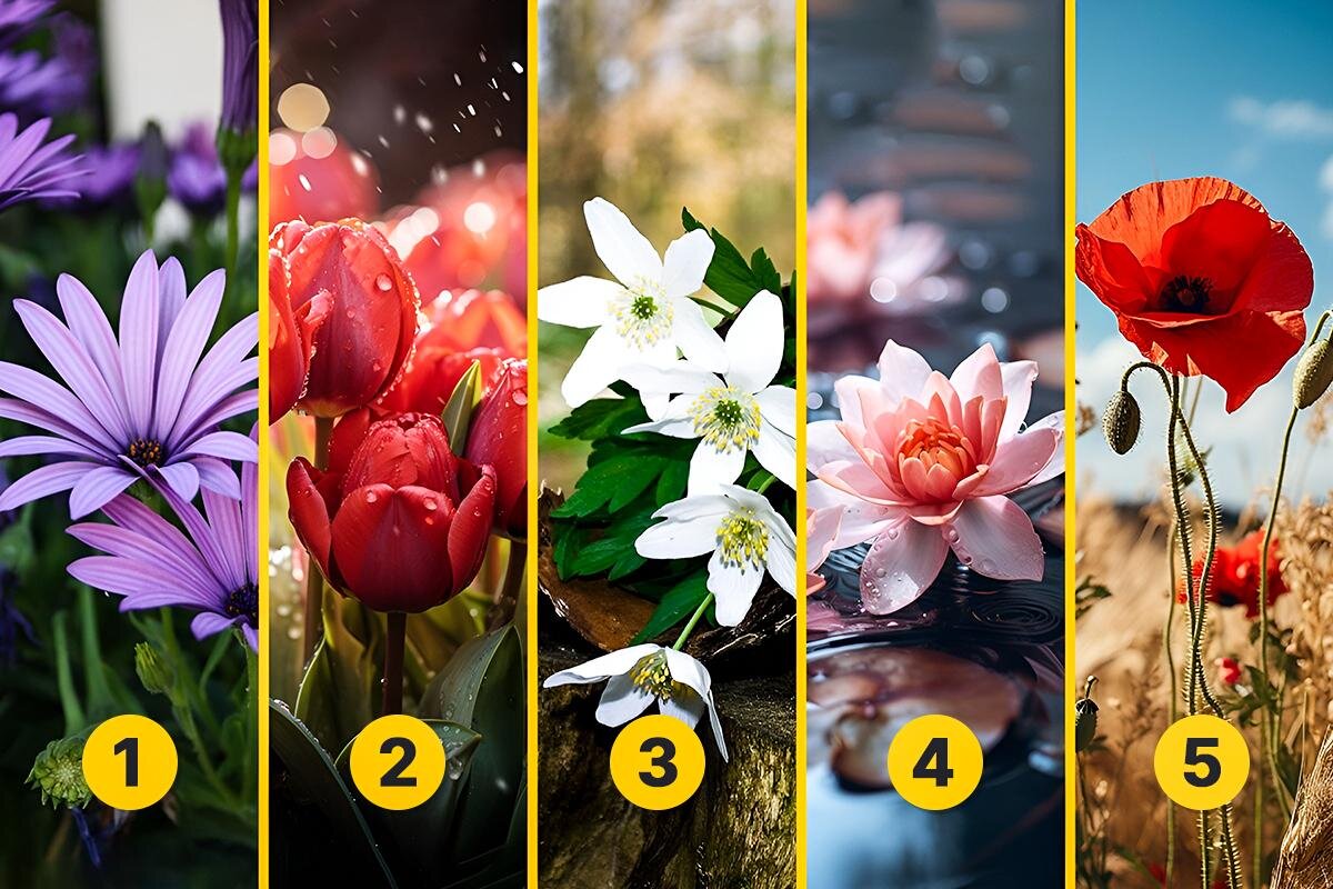 Наши предпочтения в цветах могут многое поведать о внутренних характеристиках. Посмотрите на изображение и выберите один из пяти предложенных цветков. Узнайте, что этот простой психологический тест может сказать о вас.