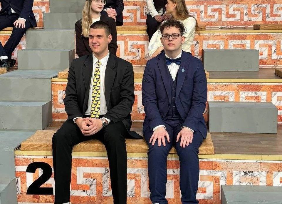 Это Кирилл Беляков из Дзержинска и Дмитрий Горохов из Нижнего Новгорода. Ребята проходили серьёзный отбор в полуфинале: писали творческое эссе, проходили устное собеседование и встречались с бессменным ведущим олимпиады Юрием Вяземским.