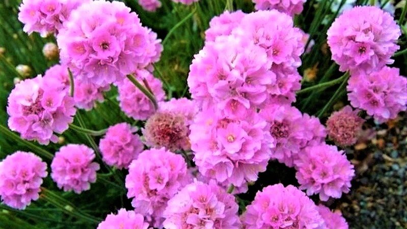 Широкой популярностью пользуется армерия приморская (Armeria maritima). Эти растения имеют высоту около 20 см и цветут круглыми соцветиями розово-лилового цвета, начиная с мая и радуя глаз до двух месяцев. Если удалять отцветшие цветоносы, кустики могут зацвести повторно осенью!