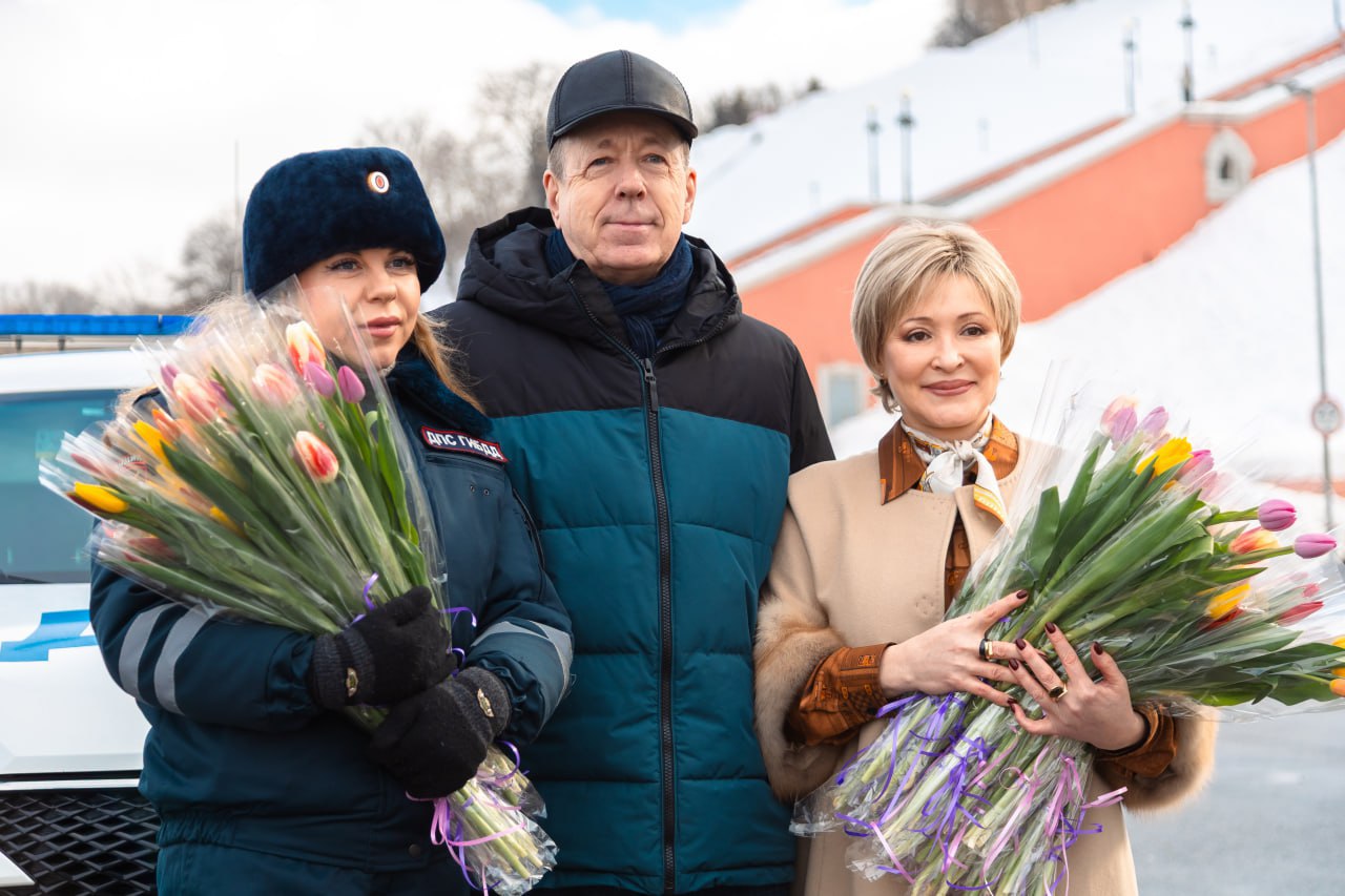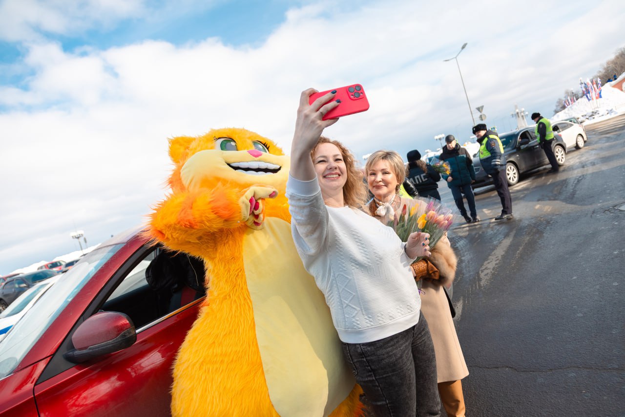 С наступающим 8 Марта девушек-водителей в Нижнем поздравили общественники, сотрудники ГАИ и Военной автоинспекции. Красиво, молодцы