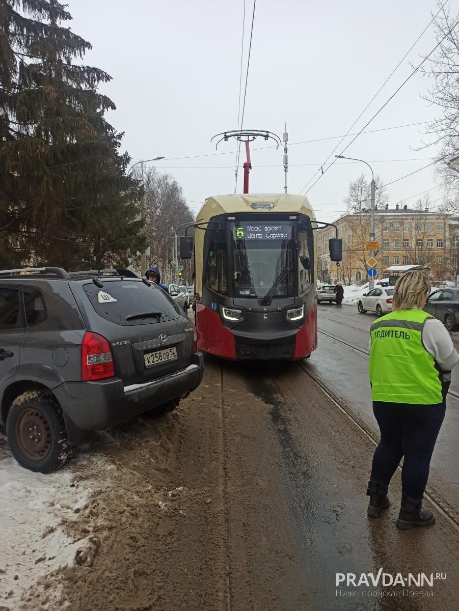 Автомобилист припарковался прямо на рельсах. Движение трамвая заблокировано на Черняховского.
