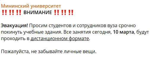 В соцсетях пишут, что людей эвакуируют и в других вузах и колледжах. Причины пока неизвестны.