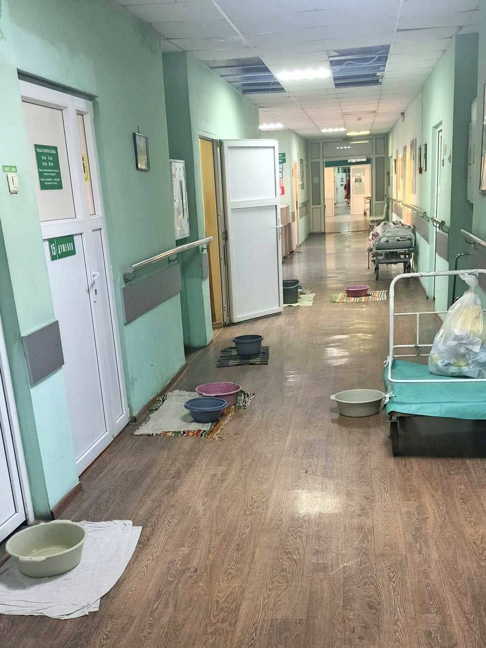 По словам представителей больницы, причиной протечек стали активное таяние снега и резкие перепады температур. Из-за этого в старом кровельном покрытии расширяются трещины, и влага через бетонные перекрытия попадает внутрь здания.
