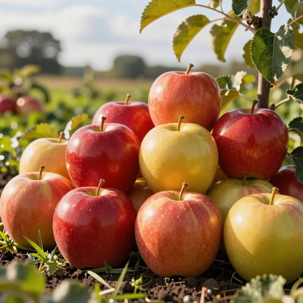 Эти яблоки имеют округлую форму и весом 125-150 граммов, с возможностью достижения 300 граммов при оптимальных условиях. Мякоть плотная, сочная и обладает кисло-сладким вкусом, а высокая лежкость позволяет сохранить плоды до 240 дней. Сорт также известен своей генетической устойчивостью к парше, что значительно упрощает уход за деревом и снижает необходимость в химических обработках.