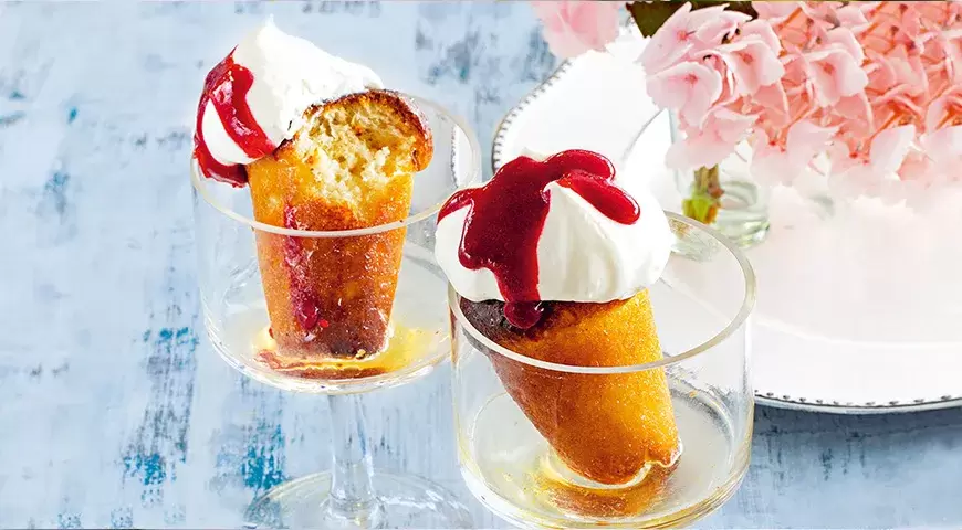 Ромовая баба — это воздушный и нежный десерт, наполненный восхитительным ароматом рома. Сочетание с ягодным соусом делает его не только вкусным, но и визуально привлекательным, что идеально подходит для любого торжества.