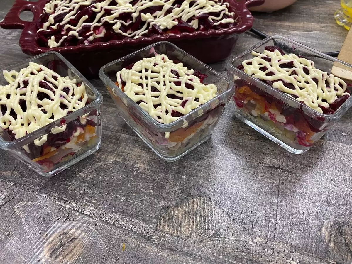 Таким образом, вместо традиционной версии салат получится необычным, но не менее вкусным, способным удивить всех присутствующих своеобразным взглядом на любимое блюдо.