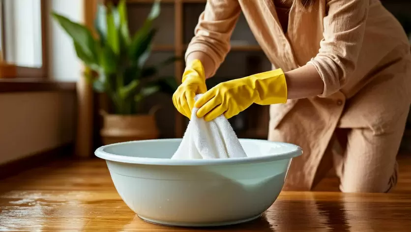 - Вода и уксус: Смешайте один литр теплой воды с двумя столовыми ложками уксуса. Для аромата добавьте каплю эфирного масла.