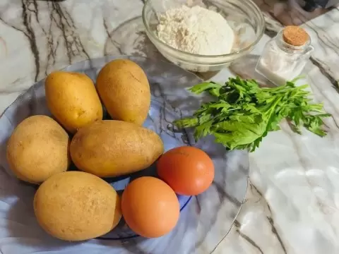 Подготовка ингредиентов. Тщательно помойте картофель, идеально — с помощью щетки, чтобы избавиться от загрязнений. Для более интересного вкуса в тесто можно добавить специи, например, молотый перец или паприку.