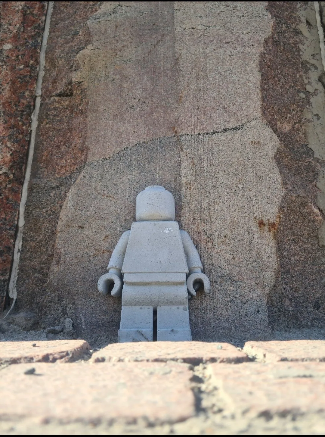 Этого милого лего-человечка создал из бетона нижегородский художник Роман Саро. Такой материал он использовал, чтобы придать особую фактуру и монументальность.