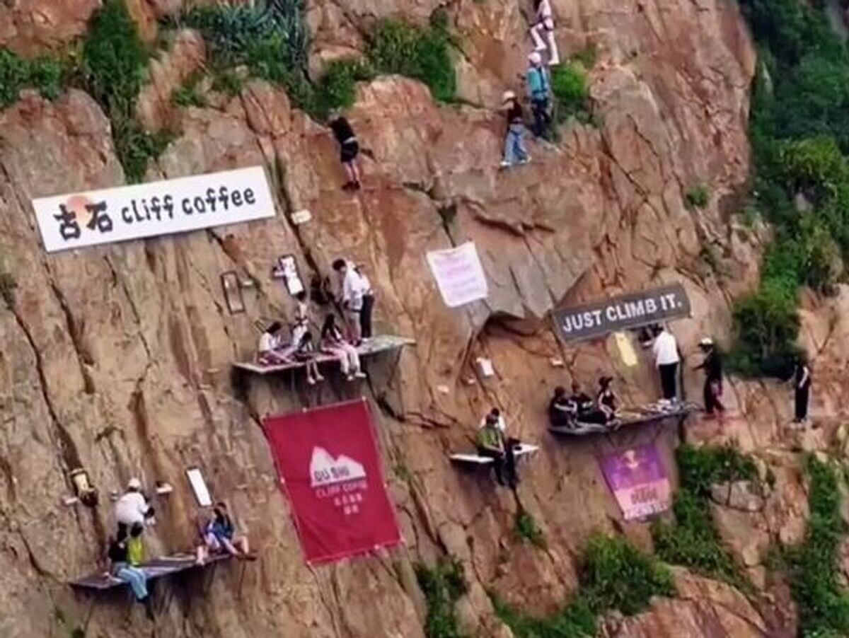 Кофейня, расположенная на отвесной скале в китайской провинции Фуцзянь, стремительно набирает популярность в социальных сетях. Эта уникальная точка притяжения предлагает своим посетителям выпить кофе на узкой доске с захватывающим видом на море, полностью снаряженными для приключений. Необычное заведение стало настоящим трендом в преддверии Китайского Нового года.
