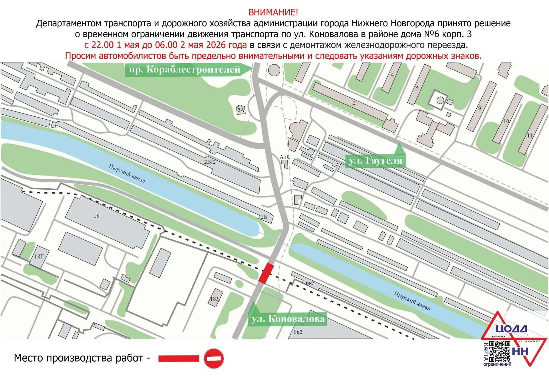 Это связано с демонтажом железнодорожного переезда. Ограничения будут действовать с 22 часов 1 мая до 6 часов 2 мая. В связи с этим: