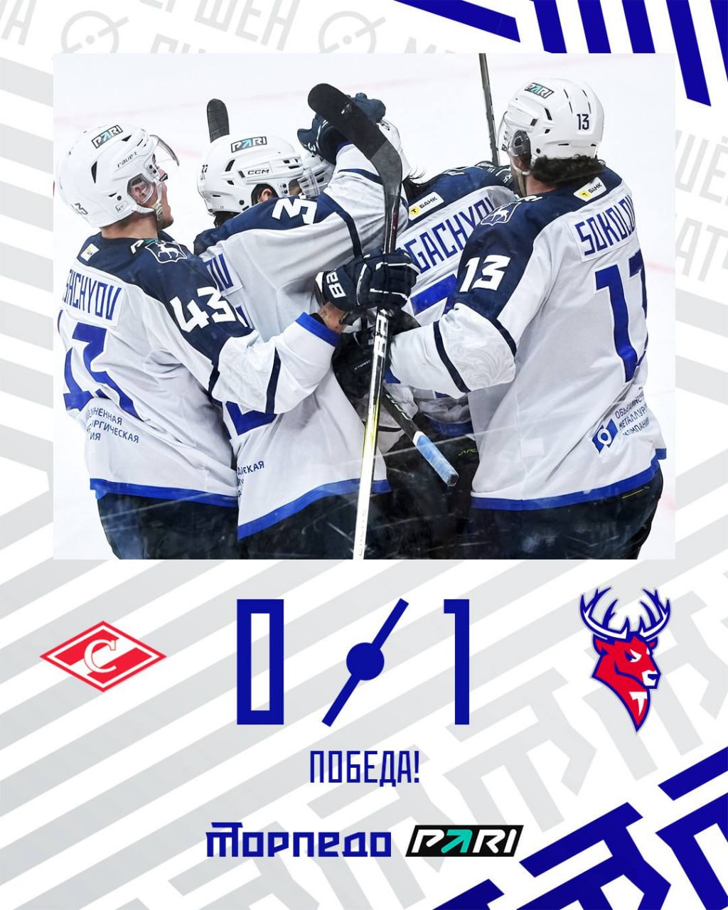 Московский «Спартак» проиграл нижегородскому «Торпедо» со счетом 0:1 в домашнем матче регулярного чемпионата «Фонбет» — КХЛ.